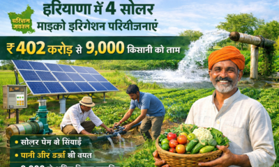 हरियाणा में 4 सोलर-पावर्ड इंटीग्रेटेड माइक्रो-इरिगेशन परियोजनाओं को मंजूरी, ₹402 करोड़ से अधिक की लागत से करीब 9,000 किसानों को मिलेगा लाभ हरियाणा सरकार ने खेती...