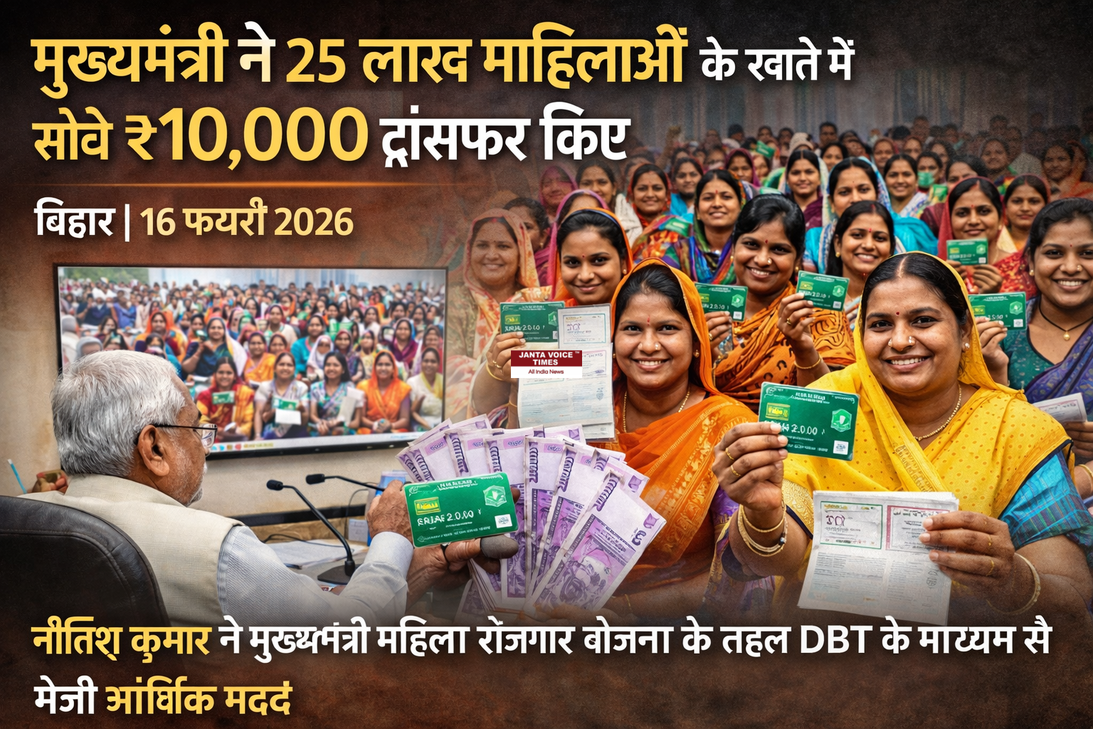 बिहार में महिला सशक्तिकरण की दिशा में आज एक बड़ा कदम उठाया गया। मुख्यमंत्री Nitish Kumar ने “मुख्यमंत्री महिला रोजगार योजना” के तहत लगभग 25 लाख महिलाओं के बैंक खातों में ₹10,000 प्रति महिला की राशि सीधे डीबीटी (Direct Benefit Transfer) के माध्यम से भेजी। इस पहल के तहत कुल करीब ₹2500 करोड़ की राशि लाभार्थियों को हस्तांतरित की गई।