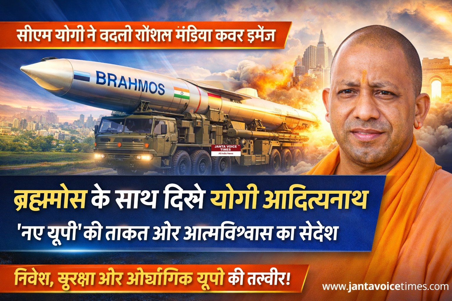 उत्तर प्रदेश के मुख्यमंत्री Yogi Adityanath ने आज सोशल मीडिया पर अपनी प्रोफाइल कवर इमेज बदलकर एक सशक्त और दूरगामी संदेश दिया है। नई कवर इमेज में मुख्यमंत्री योगी आदित्यनाथ ब्रह्मोस मिसाइल के साथ दिखाई दे रहे हैं। इसे केवल एक तस्वीर का बदलाव नहीं, बल्कि ‘नए उत्तर प्रदेश’ की सोच, नीति और दिशा के प्रतीक के रूप में देखा जा रहा है।