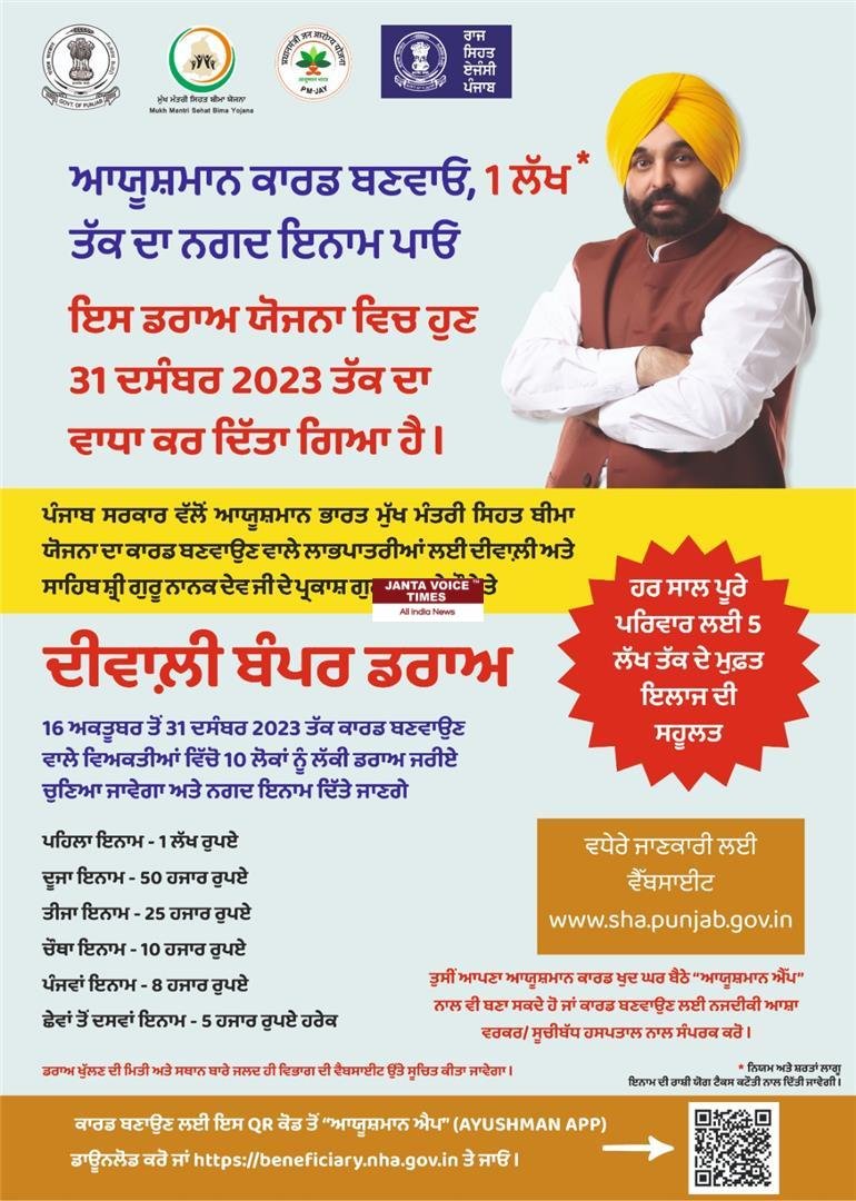 चंडीगढ़, आज: पंजाब सरकार की महत्वाकांक्षी स्वास्थ्य पहल ‘मुख्यमंत्री सेहत योजना’ को जनता से जबरदस्त समर्थन मिल रहा है। राज्य के स्वास्थ्य मंत्री ने जानकारी दी है कि अब तक लगभग 9 लाख हेल्थ कार्ड जारी किए जा चुके हैं, और हर दिन बड़ी संख्या में नए पंजीकरण हो रहे हैं।